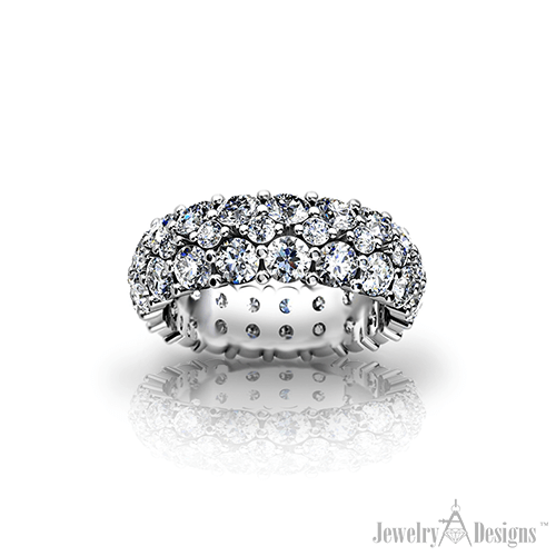 Set in Platinum by our master jewelers, this bold pave’ band stands alone on any finger. Set with nearly 5 carats of brilliant fine white diamonds this elegant ring will journey through time for generations to come. Classic in appearance, there is simply no better design to spread this many glistening diamonds comfortably around the […]