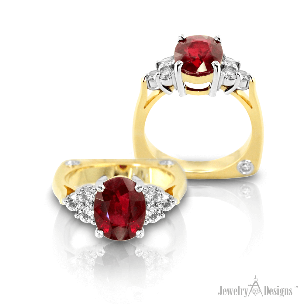 Don’t be misled by the traditional stone arrangement in this Oval three Carat Ruby Ring. This Handmade ring is not your average setting. Crafted by master jewelers in platinum and 18 karat gold, our custom ring features an extraordinary Ruby weighing 3.17 carats. Elevated in platinum prongs the surrounding diamonds total over ½ carat. The […]