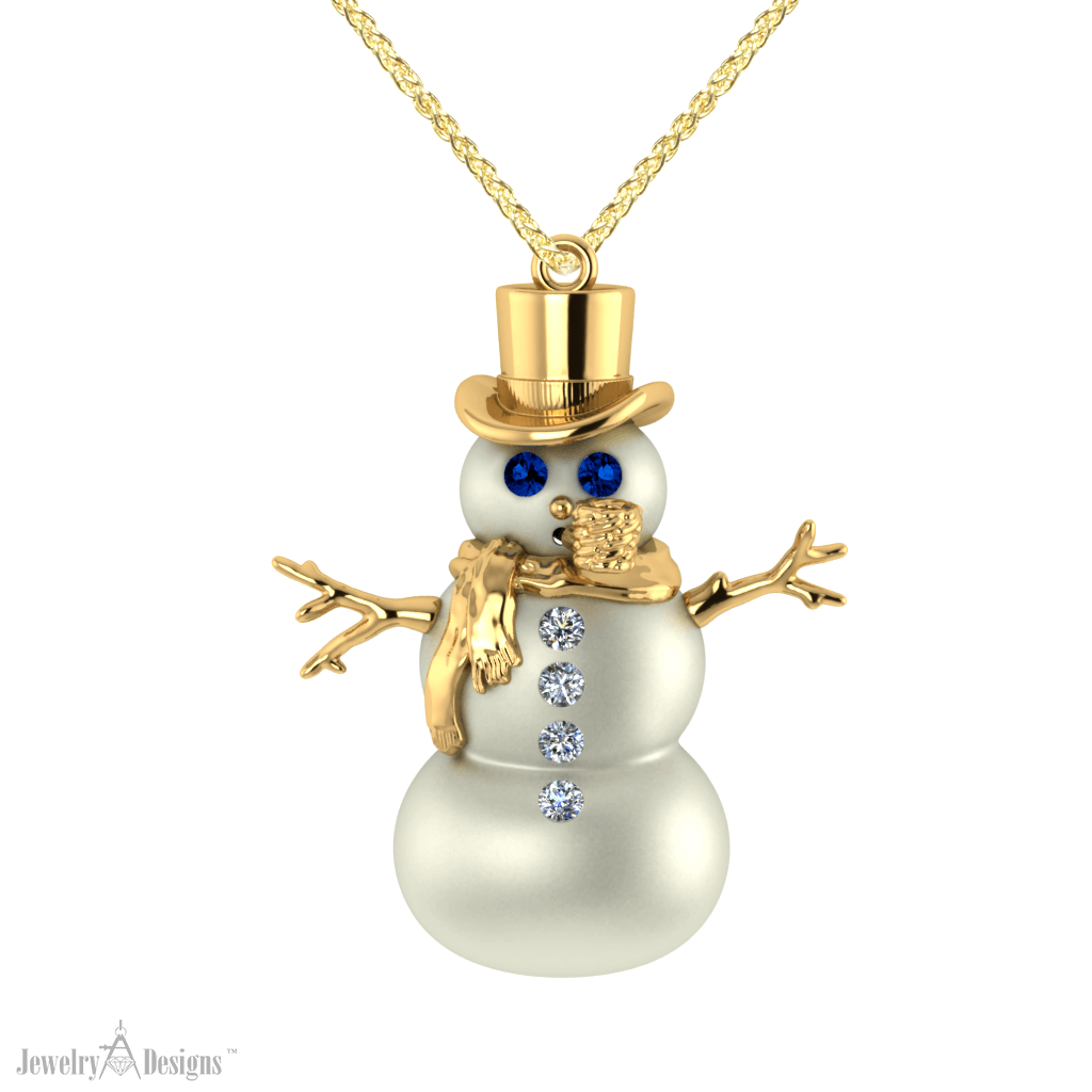 With a corncob pipe and a button nose, this adorable snowman necklace is loved by all who see it. This two tone gold snowman is created from yellow and white gold with blue sapphire eyes and diamond buttons. Designing a Gold Snowman Our designers had fun on this one. The body of our snowman is […]